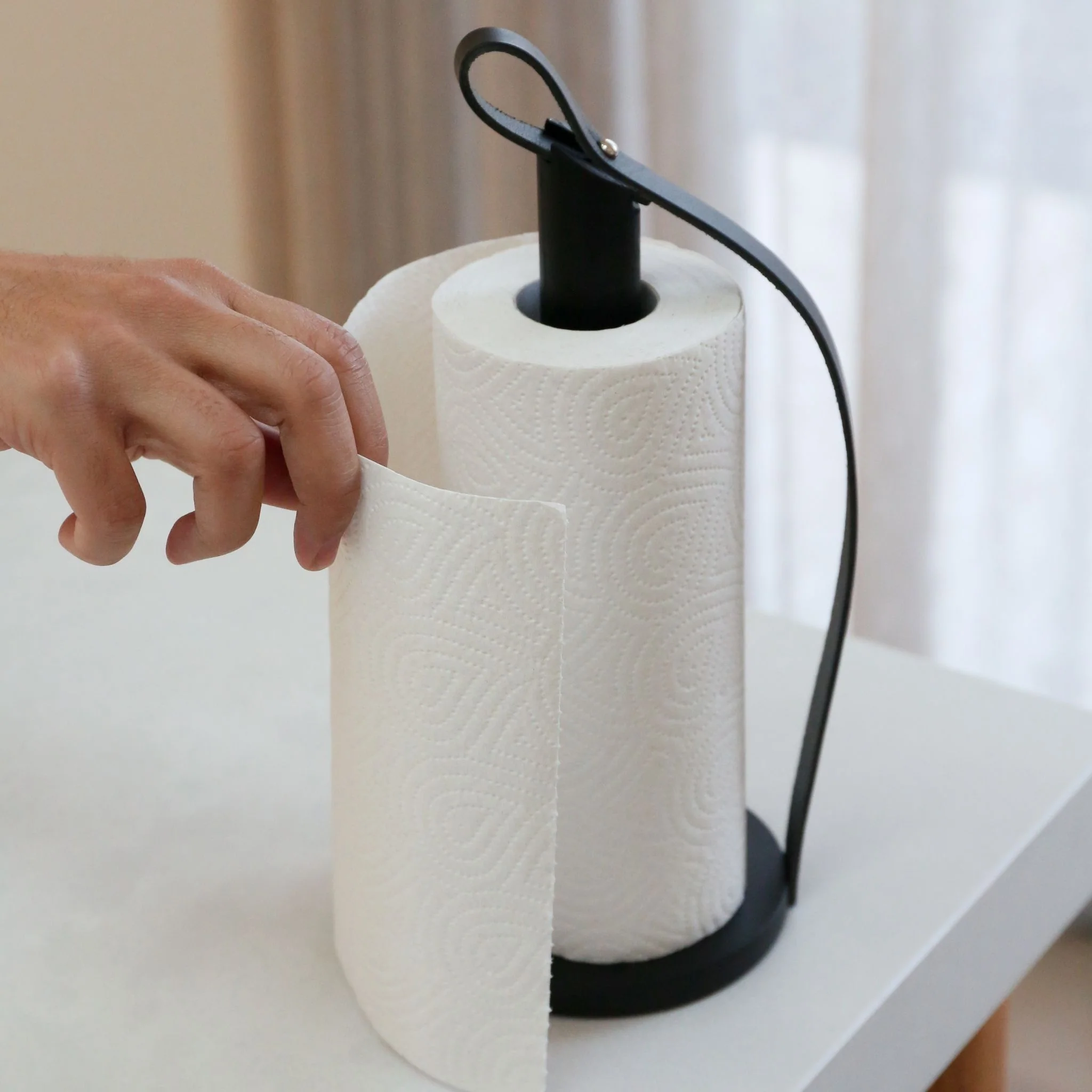 EKTA LIVING Hands On Paper Towel Holder Black Leather/Oak