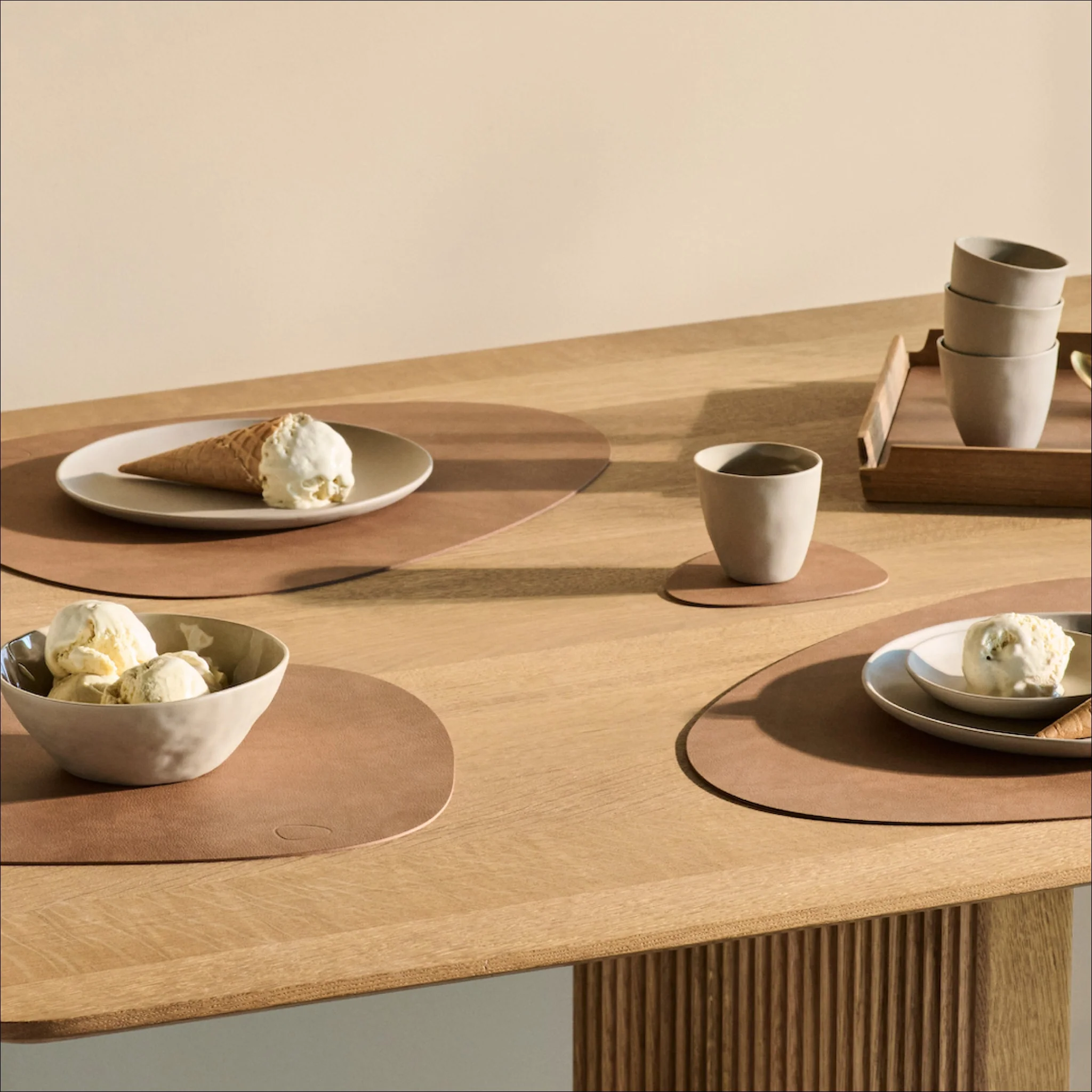 Made from strong, recycled leather – a meticulous blend of 80 % reused leather and 20 % natural rubber. This makes them durable, water and dirt repellent and very easy to clean. NUPO has a soft and delicate surface, a matte, dusty look and subtle leather patterns.